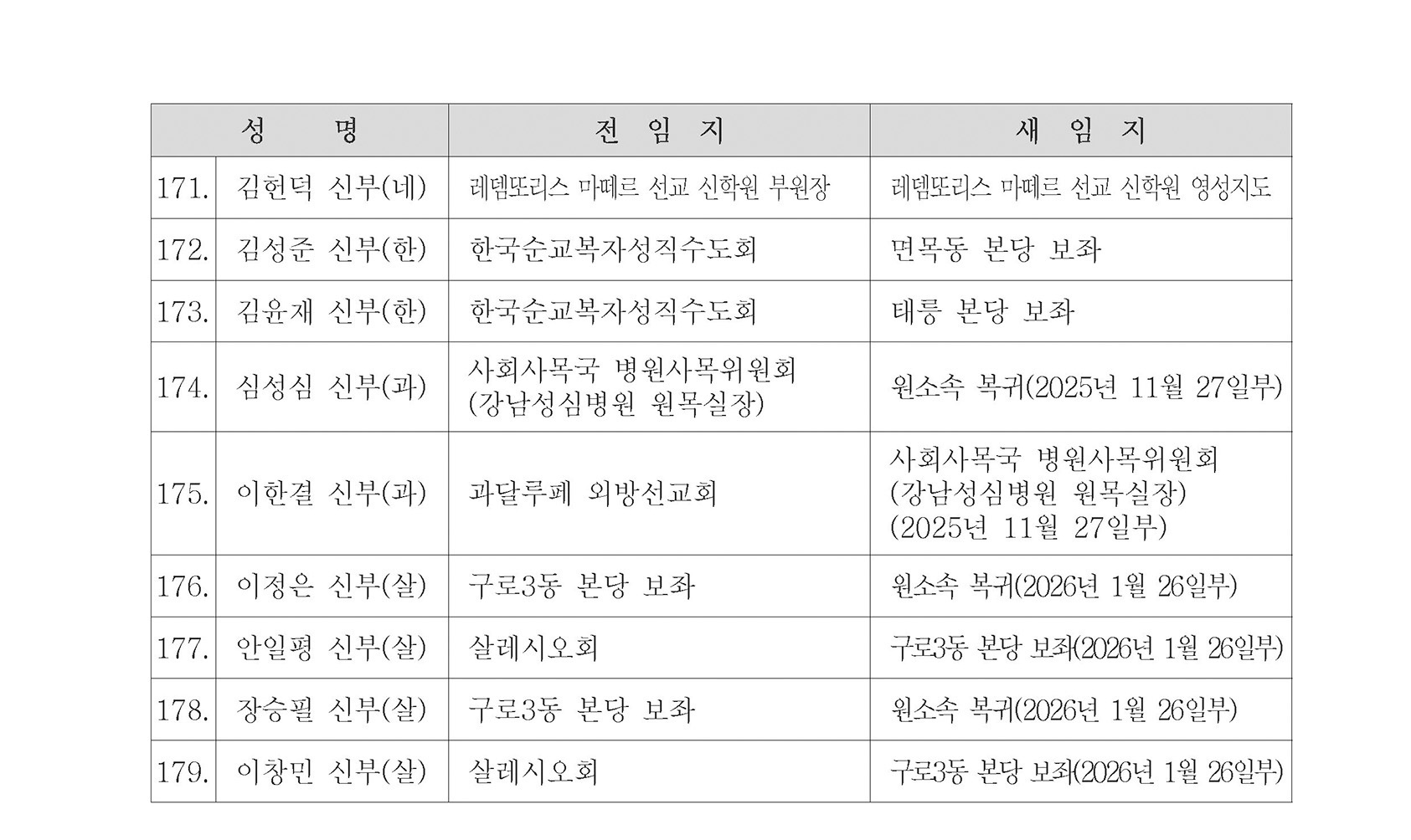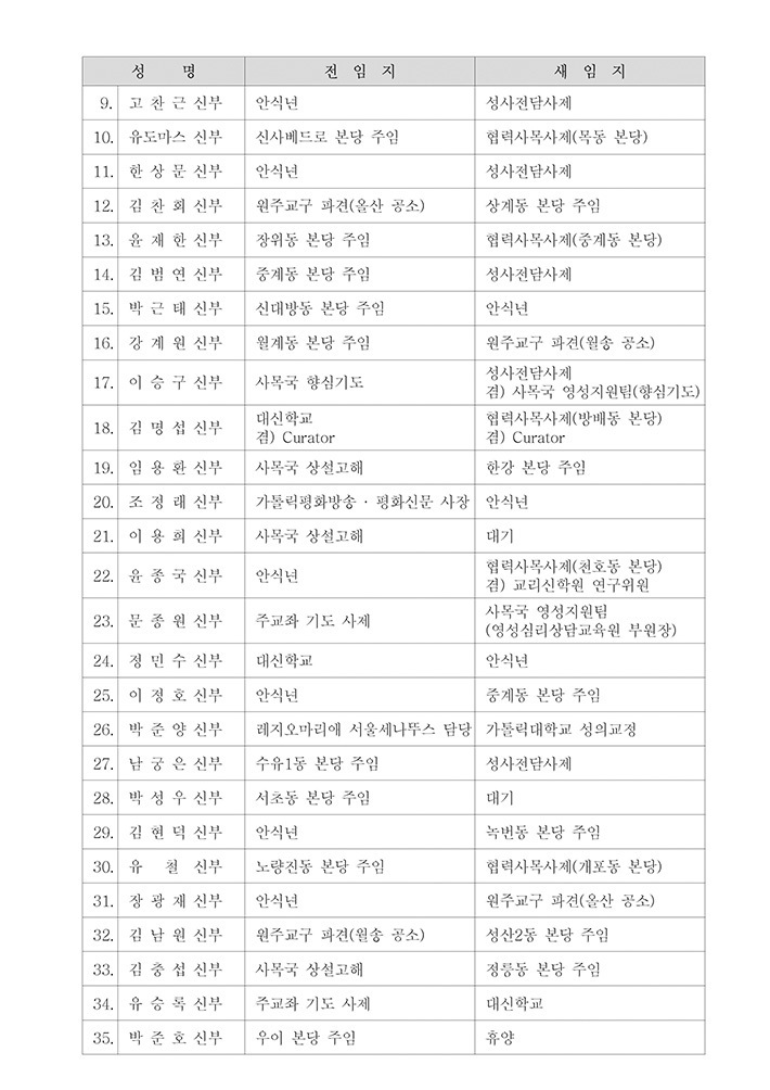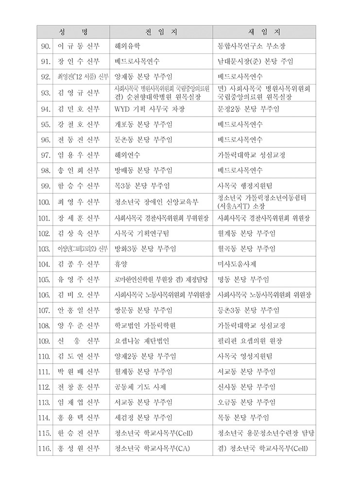 [사제인사] 서울대교구