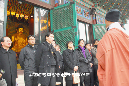 사진은 2010년 수원가톨릭대 신학생들이 서울 조계사에서 스님에게 불교에 대한 설명을 듣고 있는 모습.