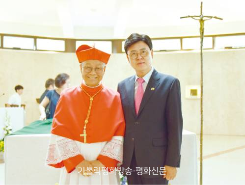 | ▲ 유흥식 추기경과 이명수 의원. 이명수 의원실 제공 |