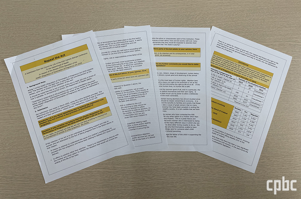 아일랜드 주교단이 2022년 아일랜드 보건부에 제출한 ‘2018년 임신중절법 운영 검토에 관한 의견서’.