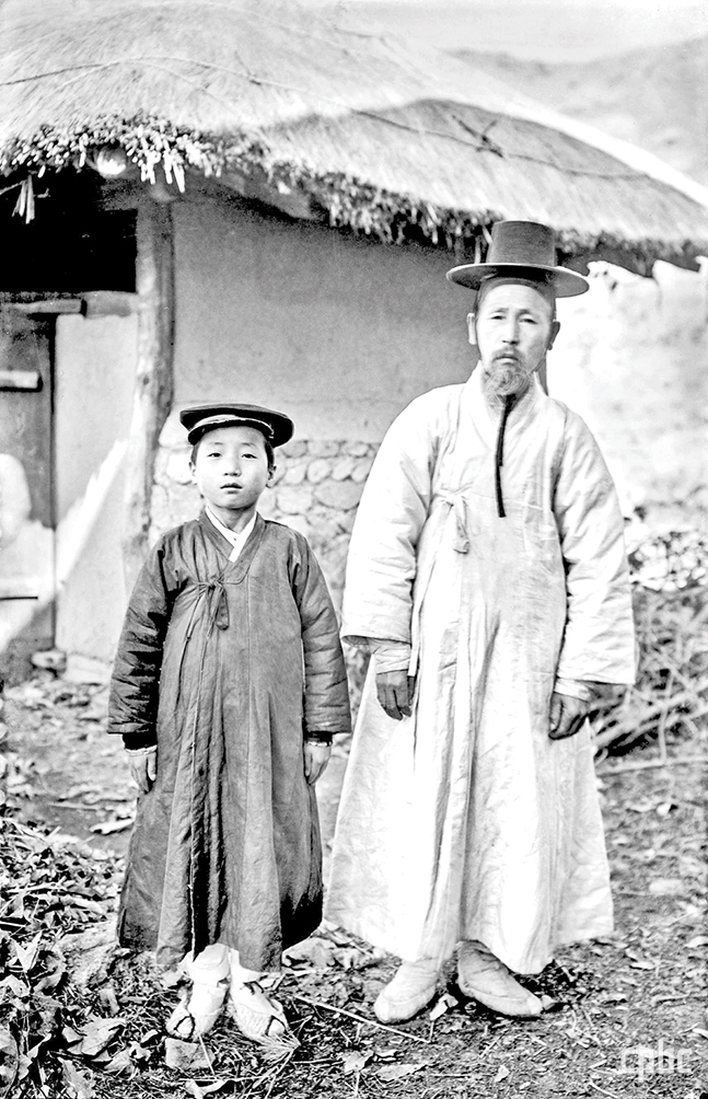 <사진 1> 노르베르트 베버, ‘전교회장과 남학생’, 유리건판, 1911년 하우현성당, 국외소재문화유산재단, 독일 상트 오틸리엔 수도원 아카이브 소장 한국 사진.