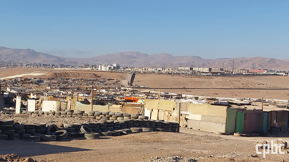 김종근 신부가 귀국 전 살았던 칠레 북구 이끼께교구 사막지역 마을 전경. 지붕도 없는 집들이 대부분이다. 코로나 팬데믹 시절 이웃국가 난민들이 사막 한가운데 집을 짓고 살면서 난민촌이 형성됐다. 성골롬반외방선교회 제공