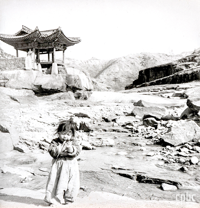 <사진 4> 노르베르트 베버, ‘세검정 앞에 서 있는 어린 소녀’, 유리건판, 1911, 국외소재문화유산재단, 독일 상트 오틸리엔 수도원 아카이브 소장 한국 사진.