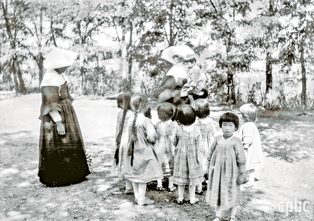 <사진 3> 노르베르트 베버, ‘샬트르 성 바오로 수녀들의 고아 구제 활동’, 유리건판, 1925, 국외소재문화유산재단, 독일 상트 오틸리엔 수도원 아카이브 소장 한국 사진.