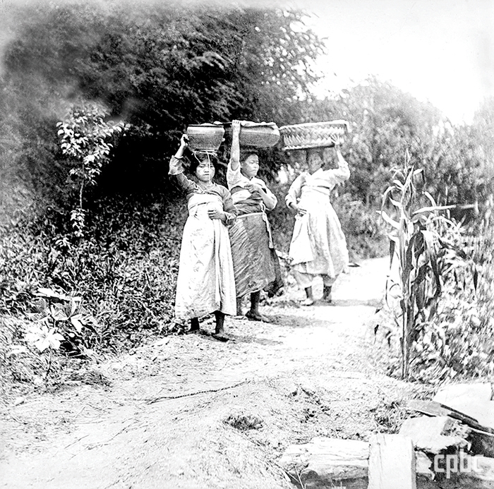 <사진 1> 노르베르트 베버, ‘머리에 짐을 인 여인들’, 유리건판, 1911, 국외소재문화유산재단, 독일 상트 오틸리엔 수도원 아카이브 소장 한국 사진.