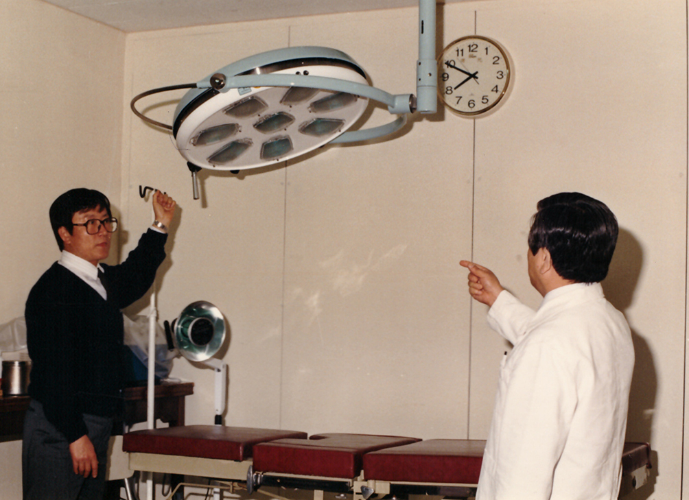 요셉의원의 신림동 시절, 진료하고 있는 선우경식 원장.