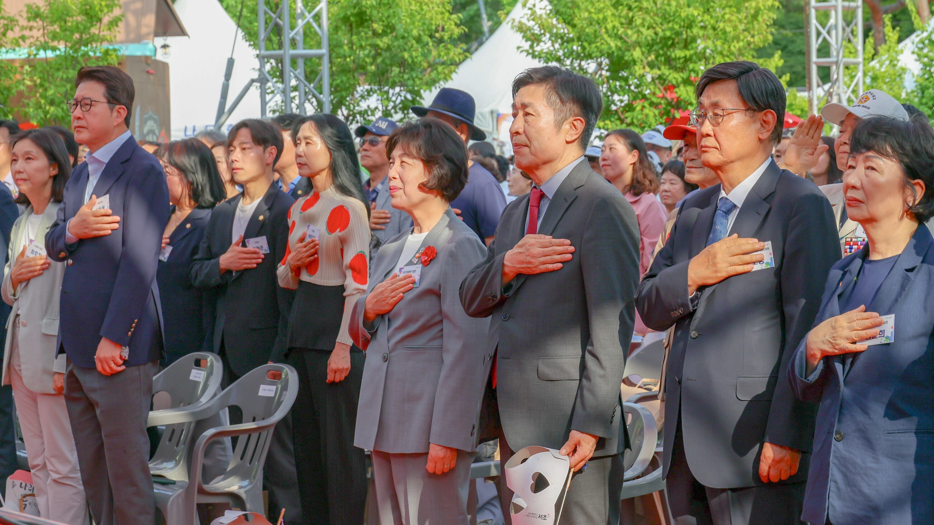 호국보훈의 달인 지난 6월 8일 서울시 서초구 매헌윤봉길의사기념관 광장에서 열린 2025 서초 보훈문화 페스티벌 국민의례의 모습. 국가보훈부 제공 / 뉴시스