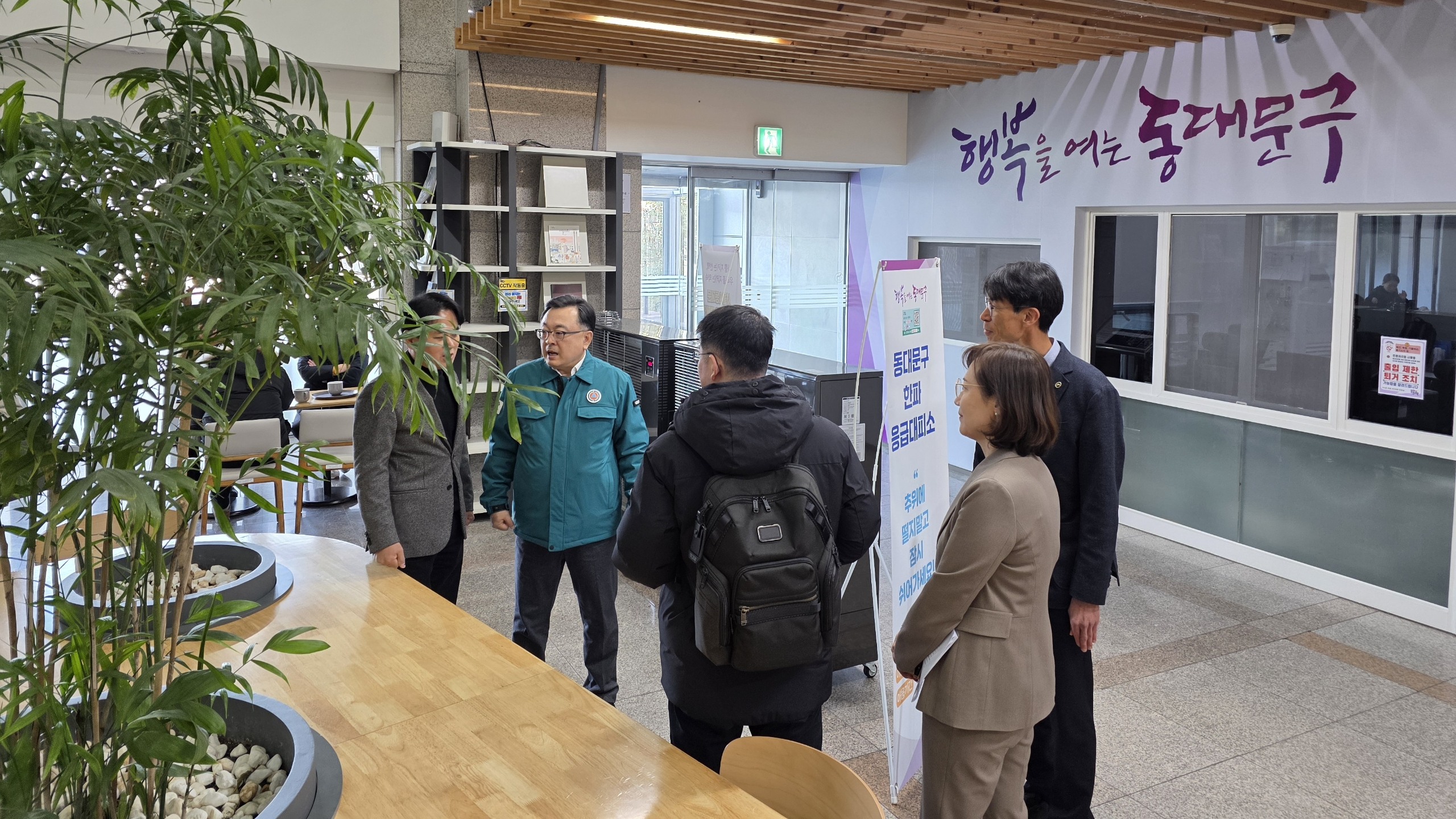 김성보 행정2부시장은 오전 10시 30분부터 약 1시간 동안 동대문구청 안에 마련된 한파응급대피소와 인근의 한파 쉼터인 동백꽃노인종합복지관을 차례로 방문해 현장을 점검했다. 난방 설비 작동 여부, 시설 운영 현황, 취약 어르신 보호 계획 등을 두루 살폈다.