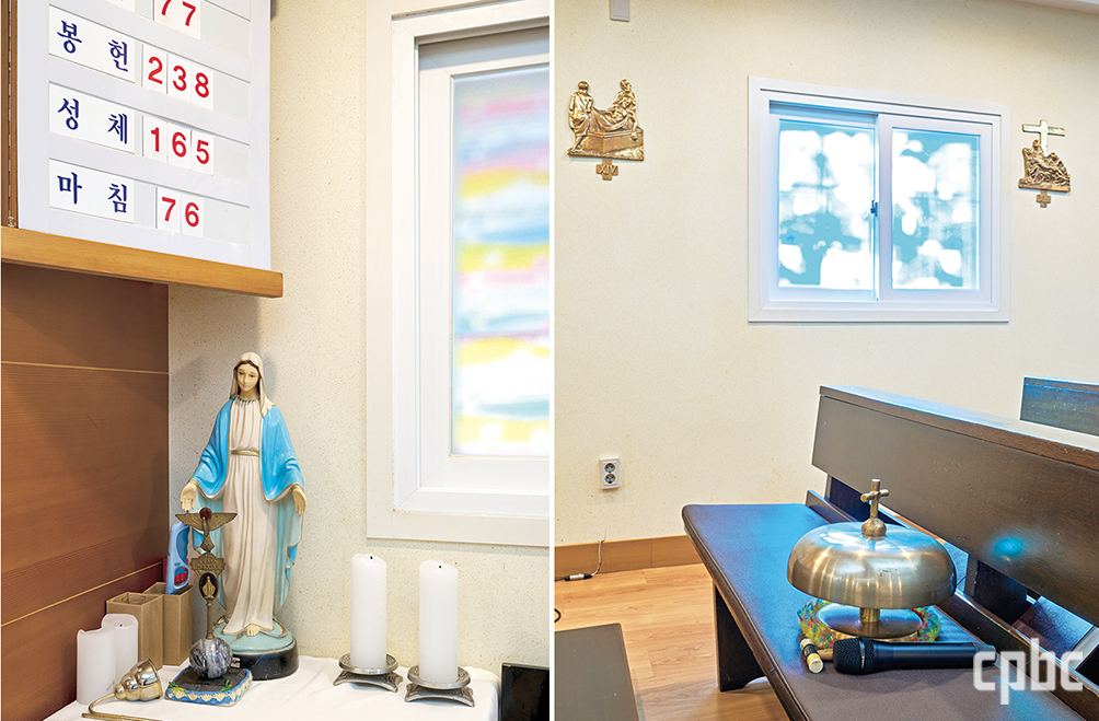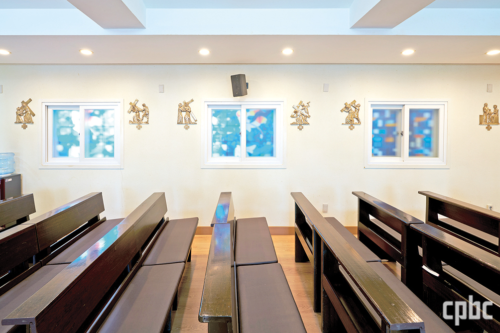 후리사공소 십자가의 길 14처. 양쪽 벽 창틀 사이로 십자가의 길 14처가 마련돼 있다.