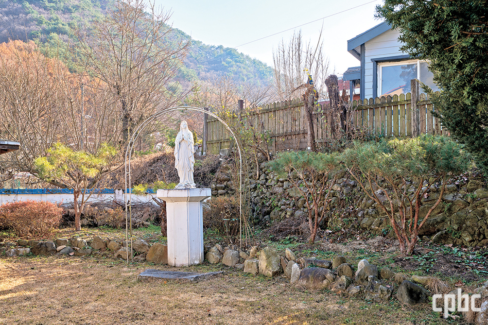 마당 성모상. 후리사공소 마당에 성모상을 꾸며 가톨릭교회임을 드러내고 있다.