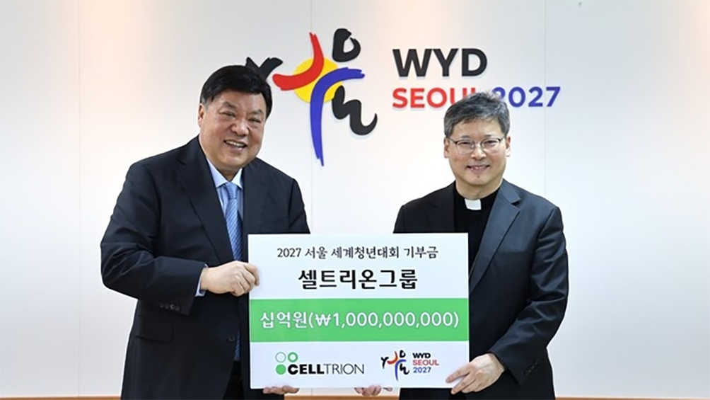 셀트리온그룹이 2027 서울 세계청년대회(WYD)의 성공적 개최를 위해 서울대교구에 10억 원을 쾌척했다. 서정진 셀트리온그룹 회장은 11일 교구청 내 교구청 내 서울 WYD 지역조직위원회 회의실에서 위원장 정순택 대주교에게 기금을 전달했다.