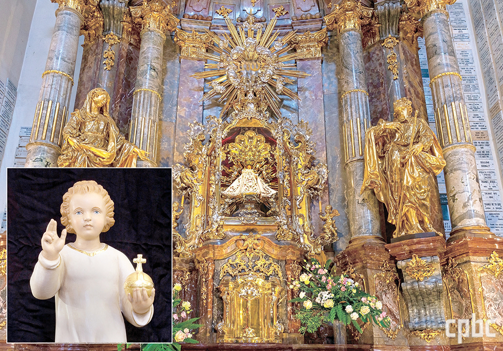 프라하의 아기 예수 측면 제대(1766)와 아기 예수상. 1556년 스페인 공작 가문이 보헤미아 귀족 집안과 결혼하면서 가져온 것으로, 1628년 폴릭세나 폰 로브코비츠가 가르멜회에 기증했다. 밀랍이 씌워진 48㎝ 크기의 조각상으로 왼손에는 십자가가 달린 보주를 들고 있으며 오른손은 축복을 내리는 모습이다. 전례력에 따라 흰색(성탄·부활), 빨간색(성령 강림·성 십자가), 자주색(대림·사순), 초록색(연중) 대관식용 외투로 갈아입힌다.