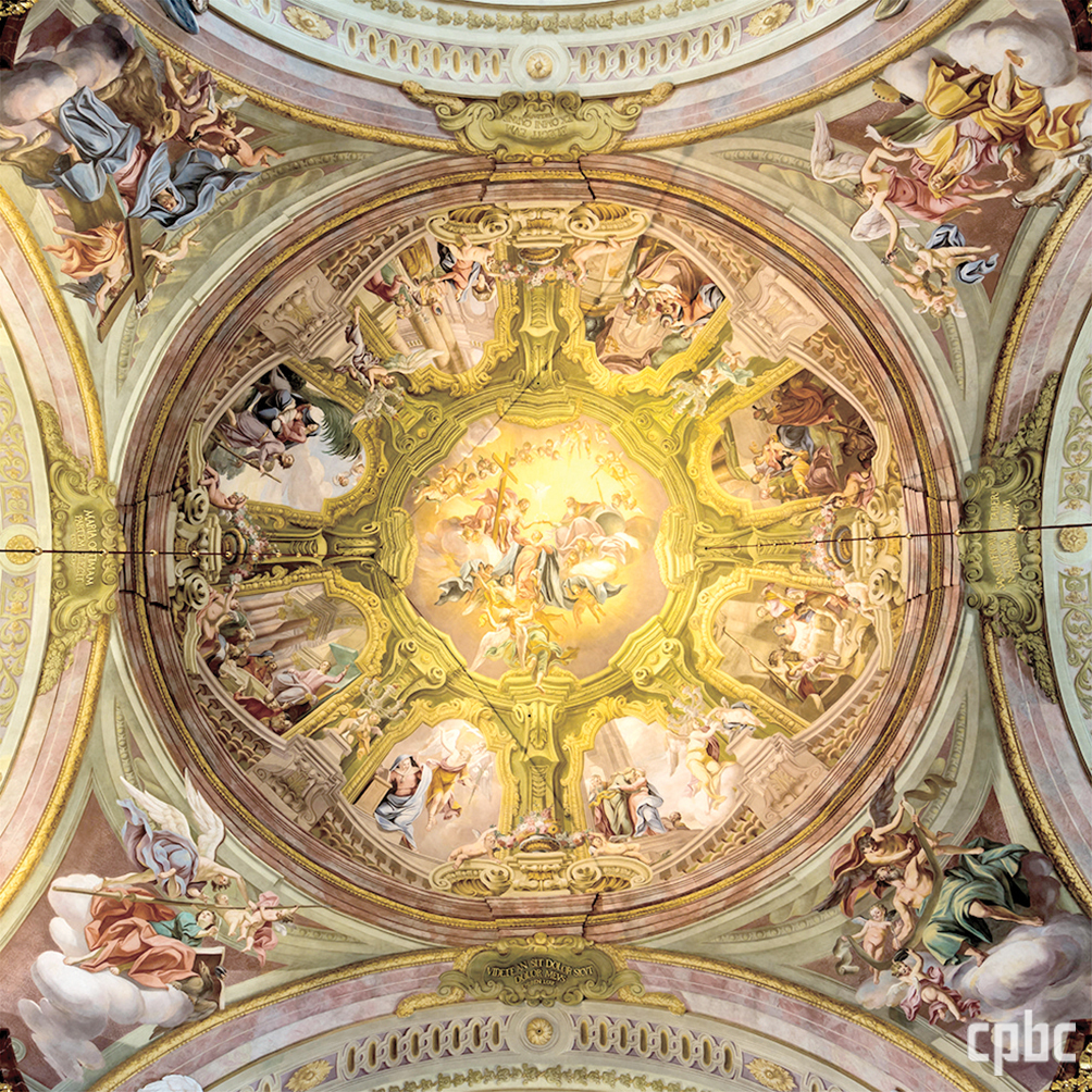 성모 승천을 주제로 한 돔 천장화. 성모 승천이 중심축이 되어 성모 마리아의 삶의 여덟 장면을 담고 있으며, 네 복음사가를 그린 묵중한 네 기둥이 돔을 받치고 있다.