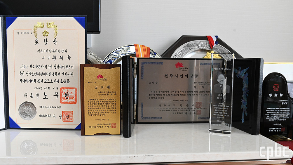황의옥씨가 지금까지 받아온 공로패와 감사장.