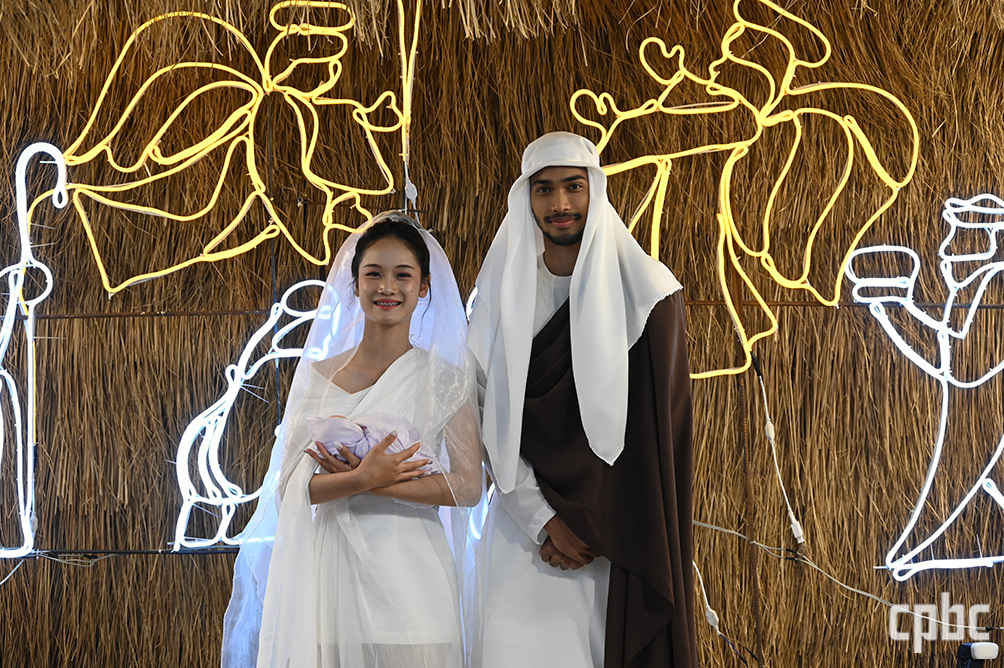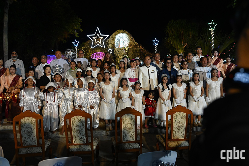 12월 23일 태국 타래-농생대교구 주교좌 성 미카엘 대성당 일원에서 열린 카퍼레이드 중 부스에서 어린 아이들이 기념촬영하고 있다.