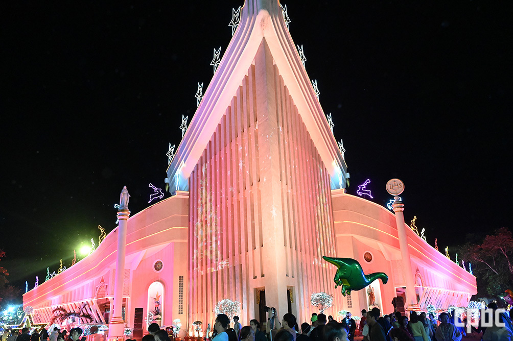 12월 23일 태국 타래-농생대교구 주교좌 성 미카엘 대성당이 핑크빛 조명으로 밝게 빛나고 있다.