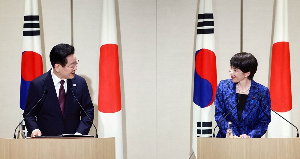 이재명 대통령과 다카이치 사나에 일본 총리가 13일 일본 나라현 회담장에서 한일 정상 공동언론발표를 하고 있다. 뉴시스
