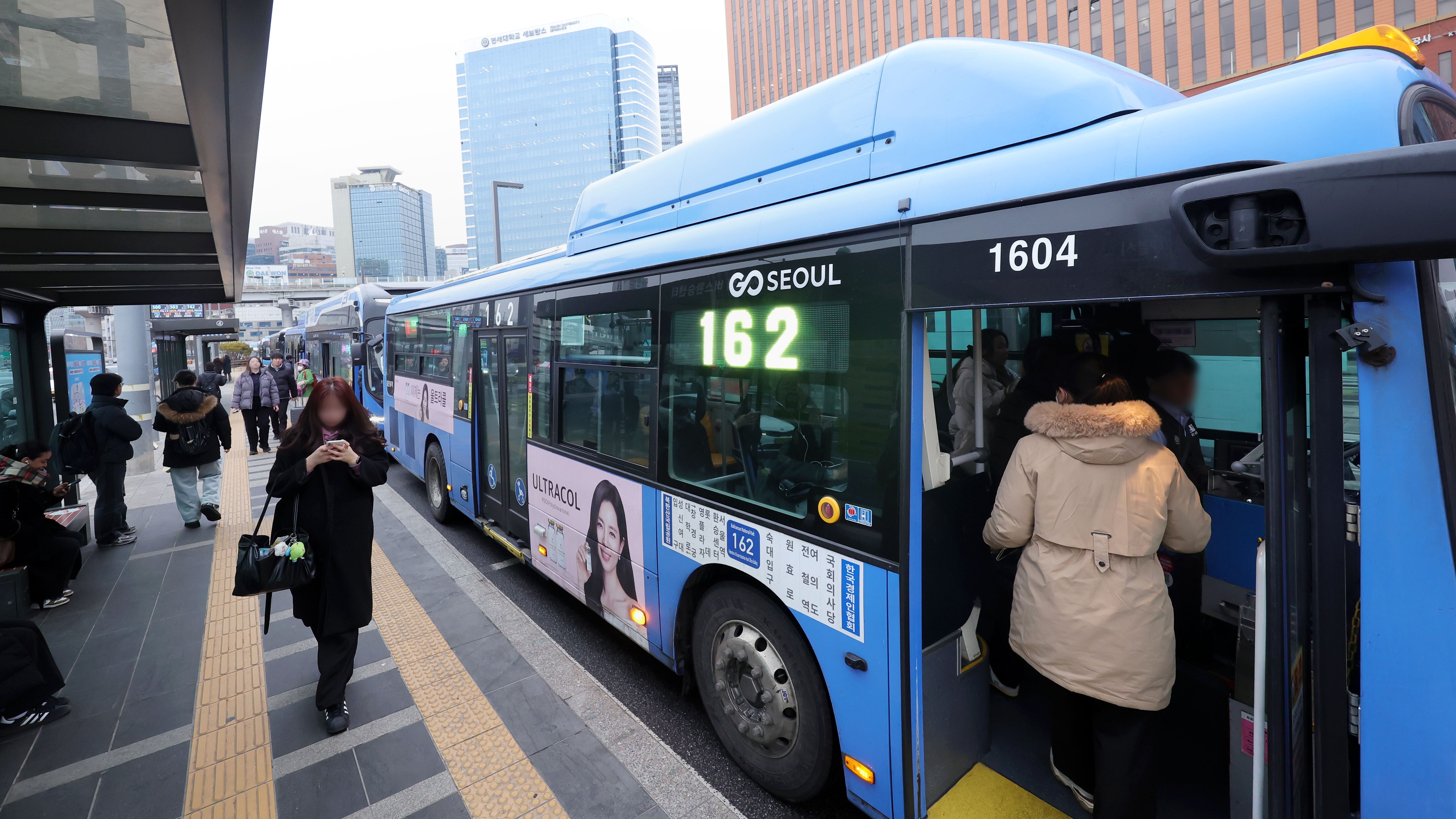 서울 시내버스 노사 간 임금 협상이 타결됨에 따라 정상 운행을 시작한 15일 오전 서울 중구 서울역 버스환승센터에 시민들이 버스에 탑승하고 있다. 뉴시스