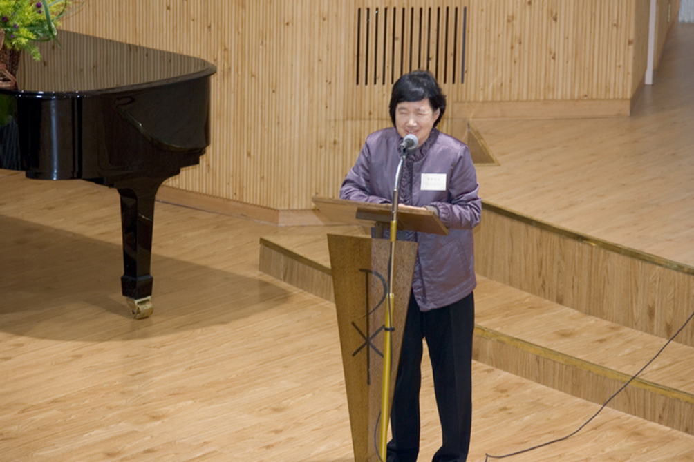 민들레 영토 30주년 축사. 2005년 이해인 수녀의 시집 「민들레영토」 출간 30주년 행사에서 축하 편지를 낭독하는 박완서 작가. 올리베따노 성 베네딕도 수녀회 제공
