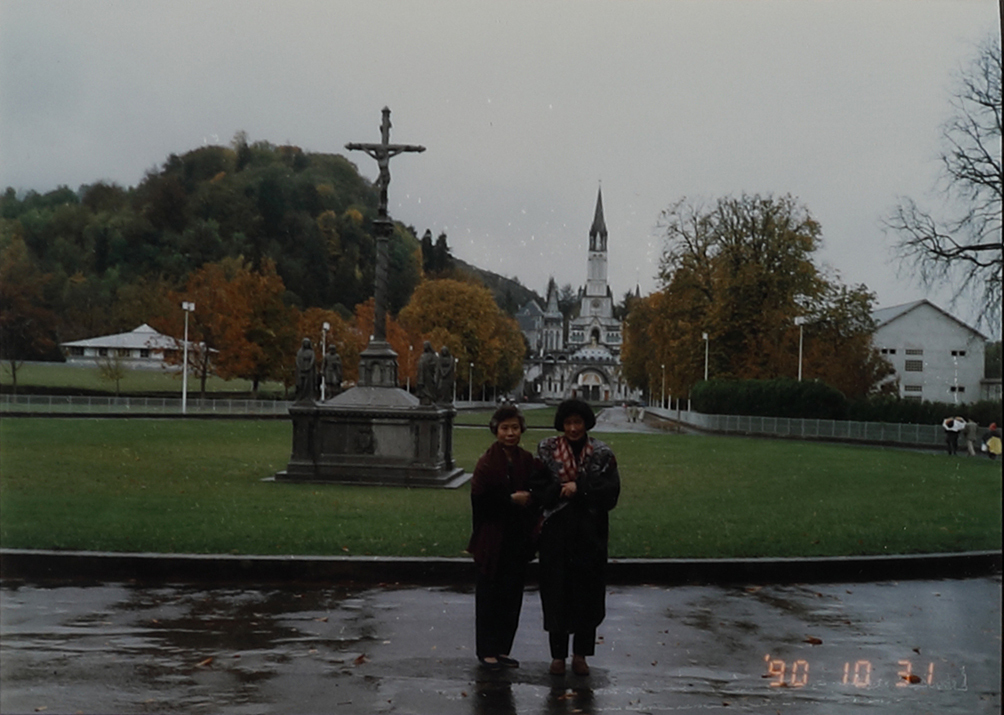 1990년 프랑스 루르드 성지 순례 중 루르드 로사리오 대성당에서 박완서 작가(오른쪽)가 친구이자 대모와 함께. 박완서디지털문학관 제공
