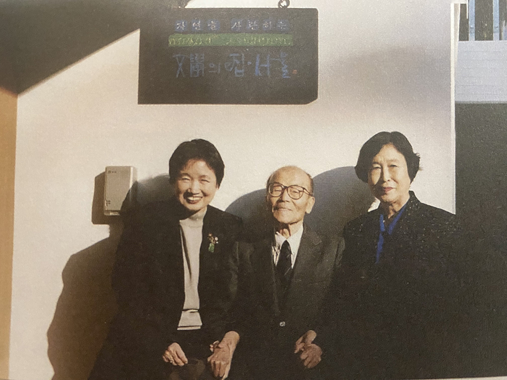 박완서 작가가 피천득 선생과 김후란 시인과 함께 문학의 집 서울에서 함께한 사진. 가톨릭평화신문 DB