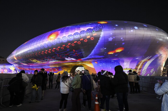 2025년 12월 18일 저녁 서울 중구 동대문디자인플라자(DDP) 외벽에 '서울라이트 DDP 2025 겨울'을 맞아 미디어아트 '서울풀 윈터' 작품이 나오고 있다. 뉴시스
