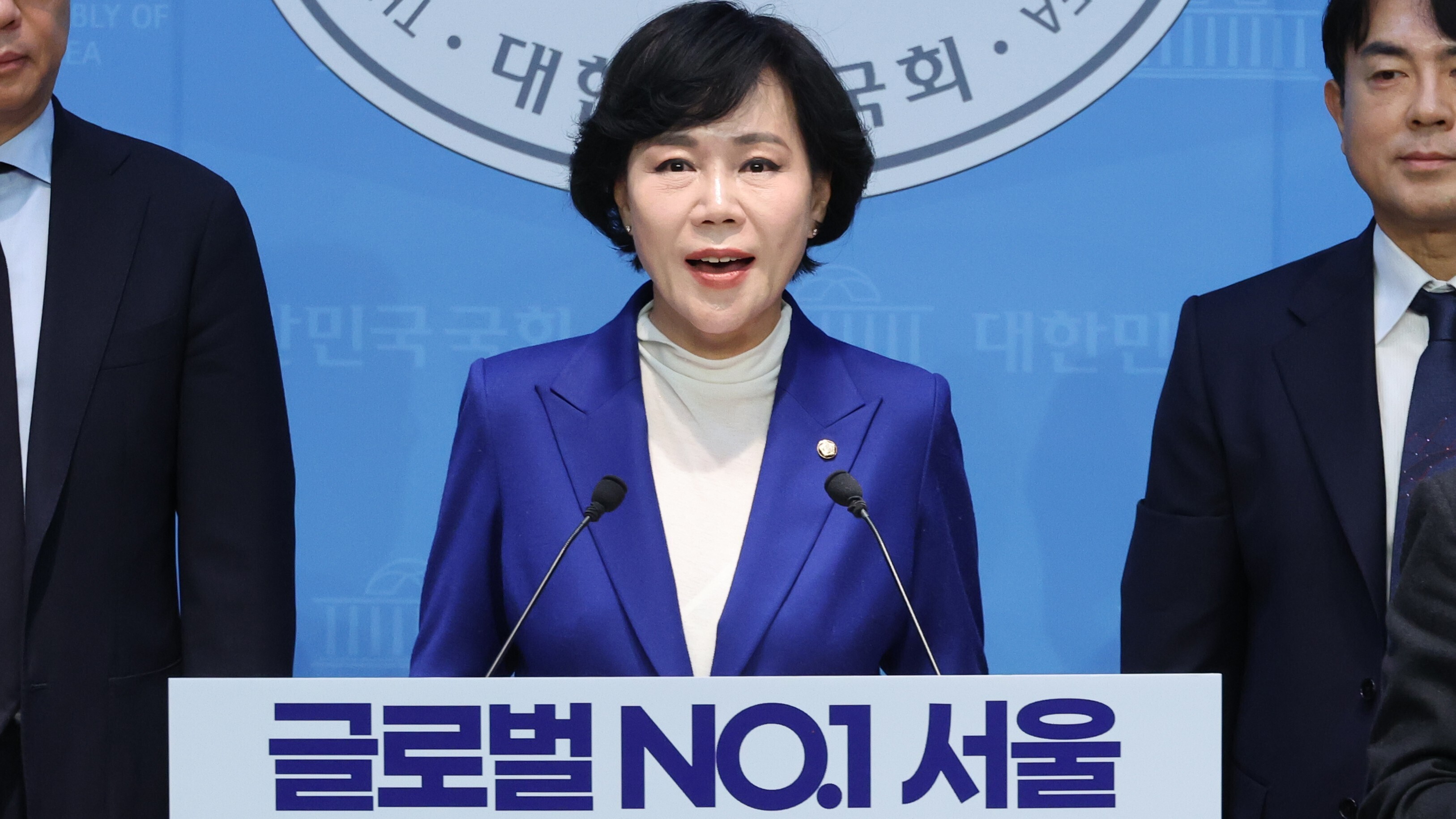 전현희 더불어민주당 의원이 2일 오전 서울 여의도 국회 소통관에서 서울시장 출마선언 기자회견을 하고 있다. 뉴시스