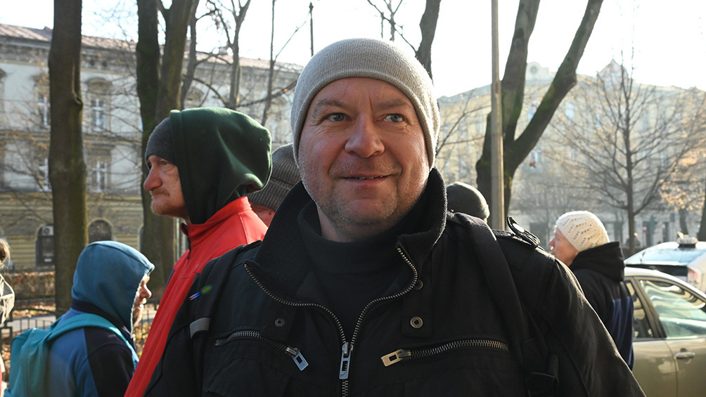 2025년 12월 12일 아침, 폴란드 크라쿠프대교구 카리타스가 운영하는 무료 급식소 ‘성 알베르토의 부엌’ 앞에 행려인 등이 줄을 서서 기다리고 있다.