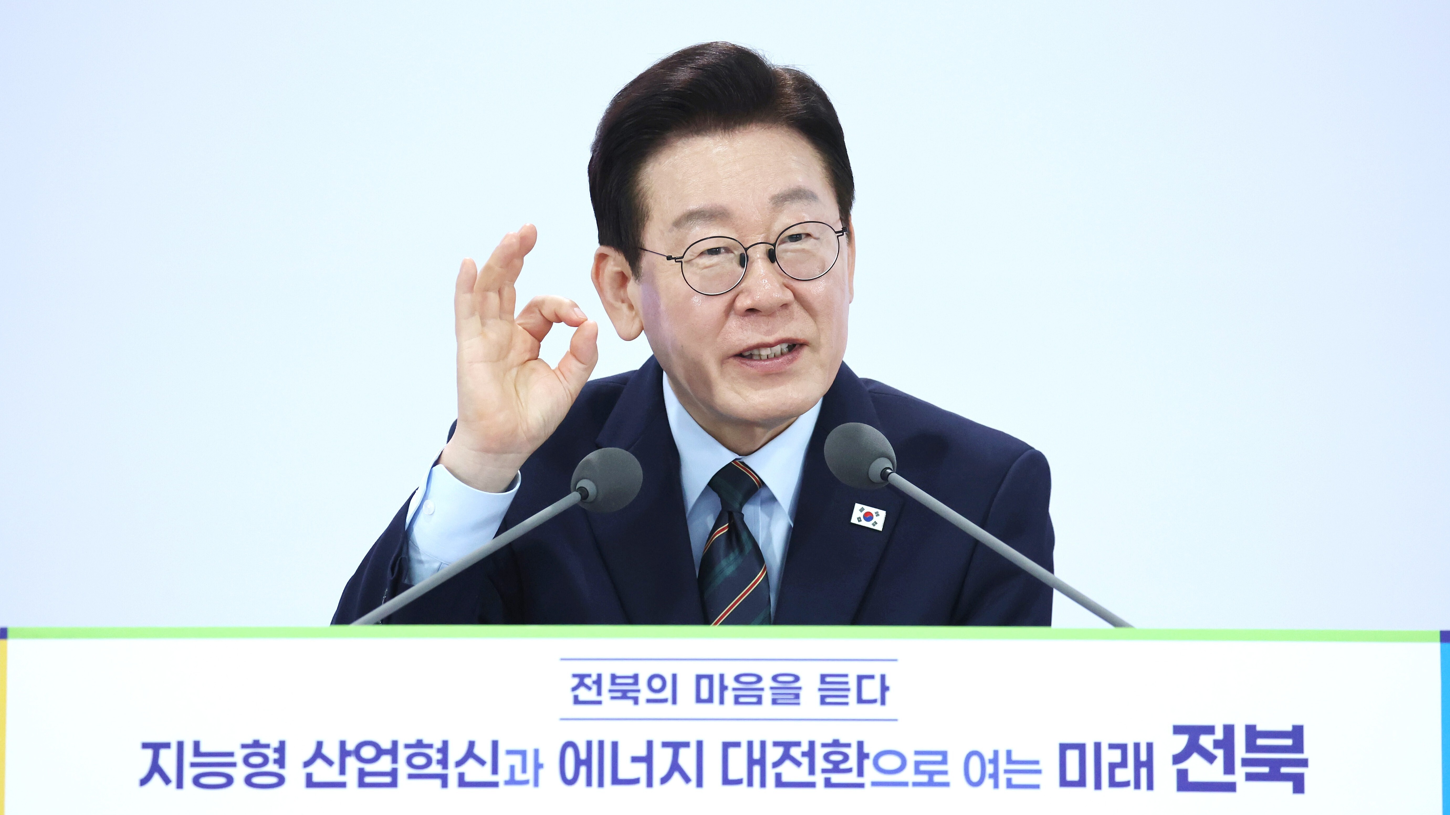이재명 대통령이 27일 전북 전주시 전북대학교에서 열린 '전북의 마음을 듣다' 타운홀 미팅 간담회에서 발언하고 있다. 뉴시스