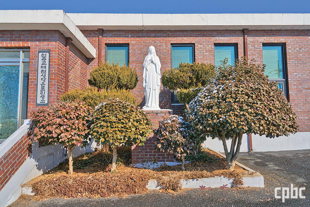 공소 입구 옆에 소박하게 꾸며져 있는 성모상.