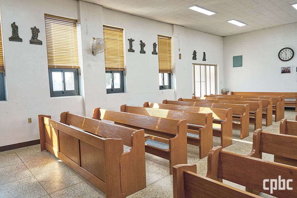 은포리공소 내부. 양 벽면에 창들을 내어 볕이 낮 동안 따뜻하게 들게 하여 온화한 분위기를 연출하고 있다.