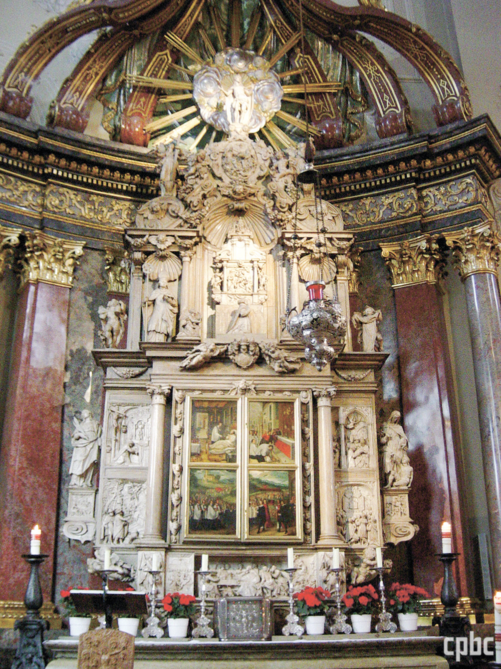 성혈 제대는 지금으로부터 400년 전에 새롭게 만들었습니다. 날개 제단화에는 이곳에서 일어난 기적, 숨김, 임종 시 고백, 공동체의 발견이 한 편의 서사시처럼 펼쳐져 있습니다. 제단화 안에 성작보가 보관되어 있습니다.