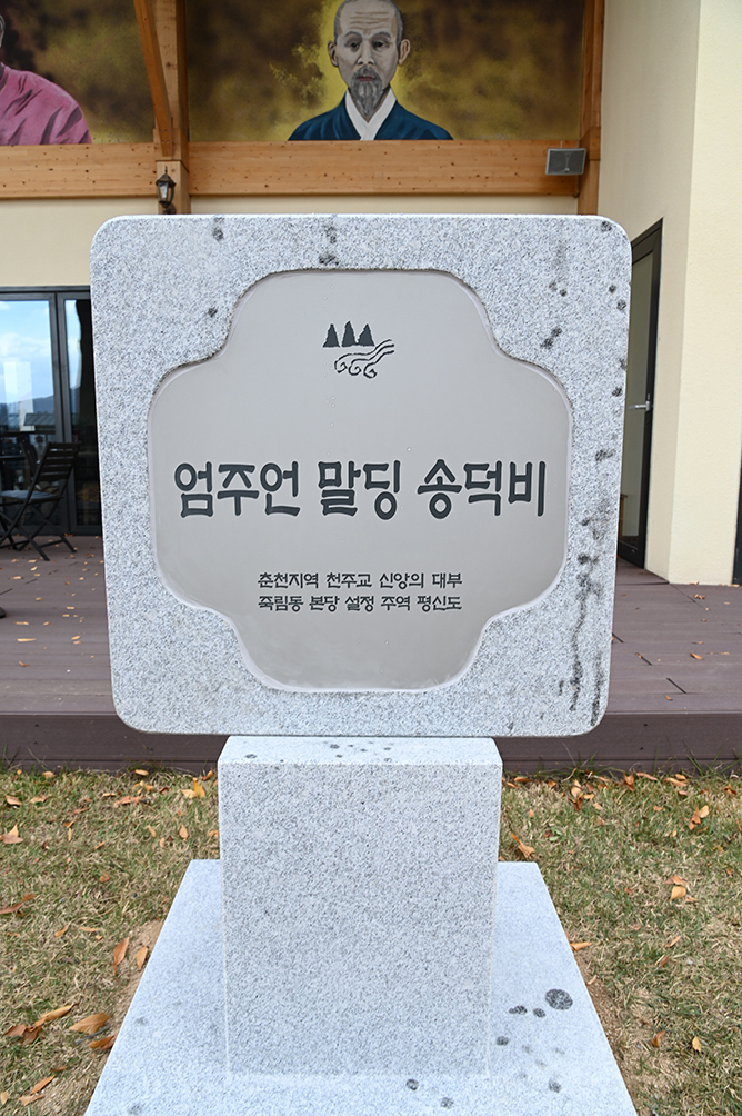 춘천교구 죽림동 주교좌성당에 세워진 엄주언 말딩 송덕비 뒤편에는 그의 삶이 기록돼 있다. 가톨릭평화신문 DB