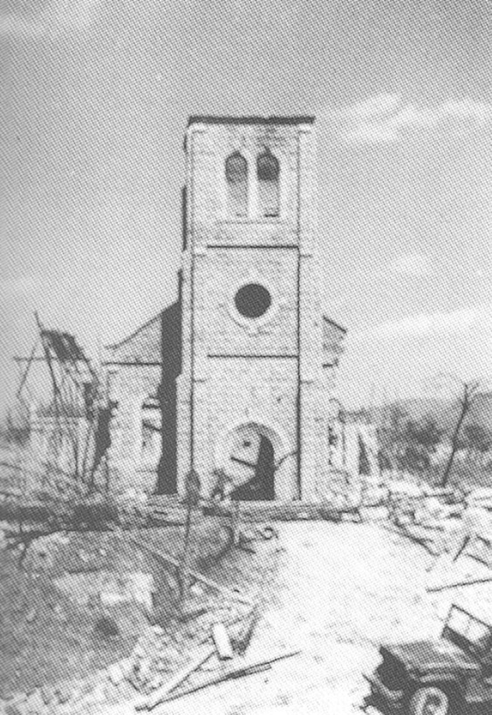 6·25전쟁으로 파괴된 죽림동성당. 출처=죽림동성당 70년사