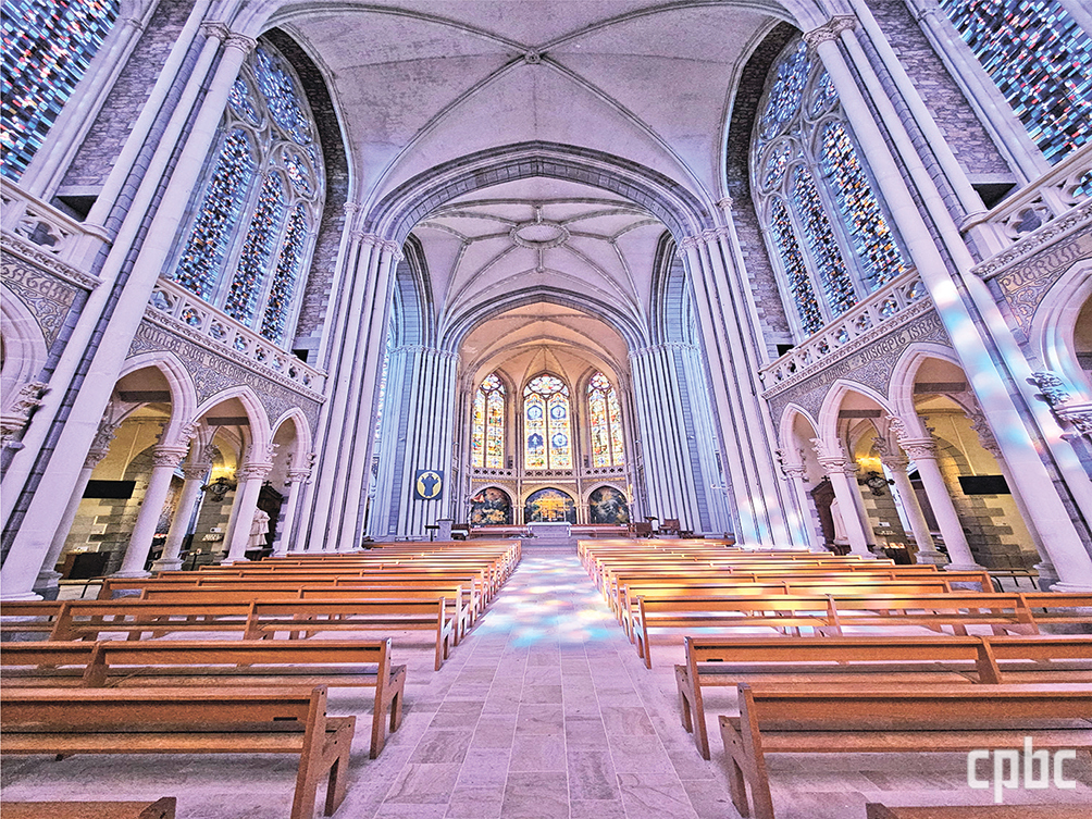 성당 내부에 들어서는 순간, 공간을 가득 채운 37가지의 각기 다른 푸른 빛에서 이곳이 성모님에게 봉헌한 성당임을 단번에 느낍니다. 본래 습지였던 지형 특성상 건물을 가볍게 하려고 창을 넓게 냈는데, 덕분에 성당은 묵중한 느낌 대신 빛이 온몸으로 스며드는 은총의 공간이 되었습니다. 여러 시기에 걸쳐 제작된 가대석과 측면 소성당의 스테인드글라스에서 그날의 사건들을 쭉 살펴볼 수 있습니다. 다양한 파란색을 사용한 이유는 아이들이 목격한 신비로운 푸른 빛을 하나의 색으로만 재현할 수 없었다고 합니다.
