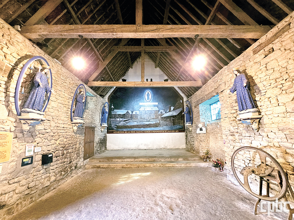 바르베데트 가족의 헛간 내부. 성모 발현이 시작된 자리를 기도의 공간으로 꾸몄다. 그날의 밤하늘을 묘사한 정면 벽화 양옆으로 성모 발현의 전개를 단계별로 보여 주는 성모상들이 전시되어 있다. 주일 밤 9시에 끝기도를 봉헌한다.
