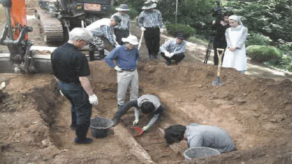 2019년 6월 11일 배론성지 최양업 신부 묘소에서 인부들이 묘소 개장 작업을 하고 있다. 원주교구 제공