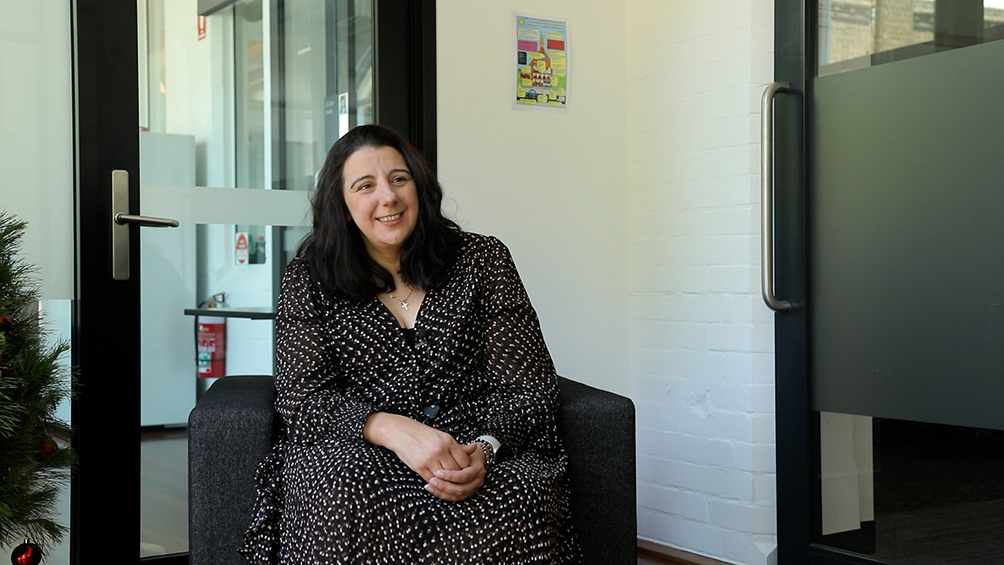 브로큰베이교구 산하 사회복지기관 ‘가톨릭케어’에서 근무하는 애슐리 도넬리씨가 2025년 12월 8일 교구청에서 2008 시드니 WYD에 대한 기억을 나누고 있다.